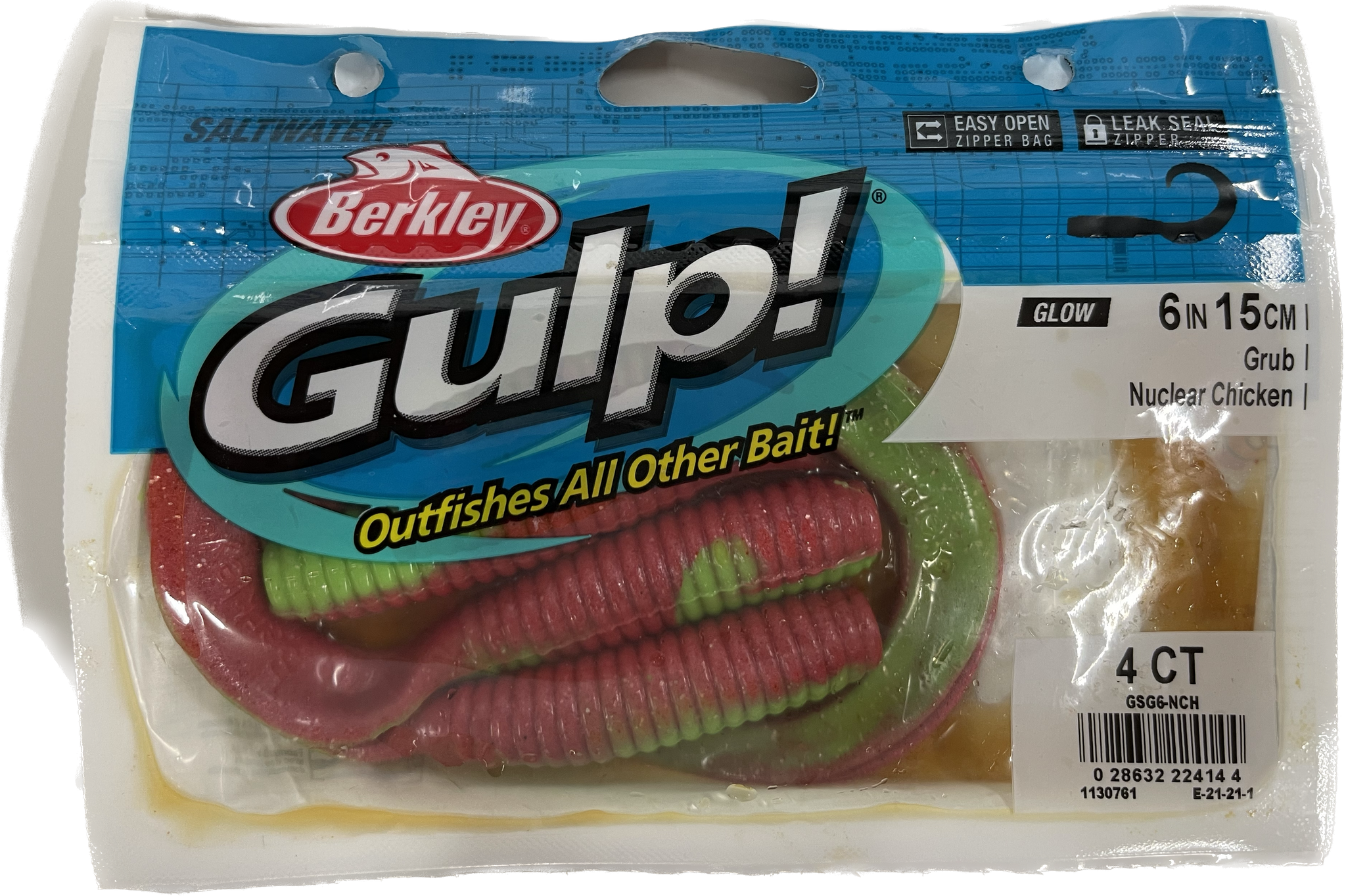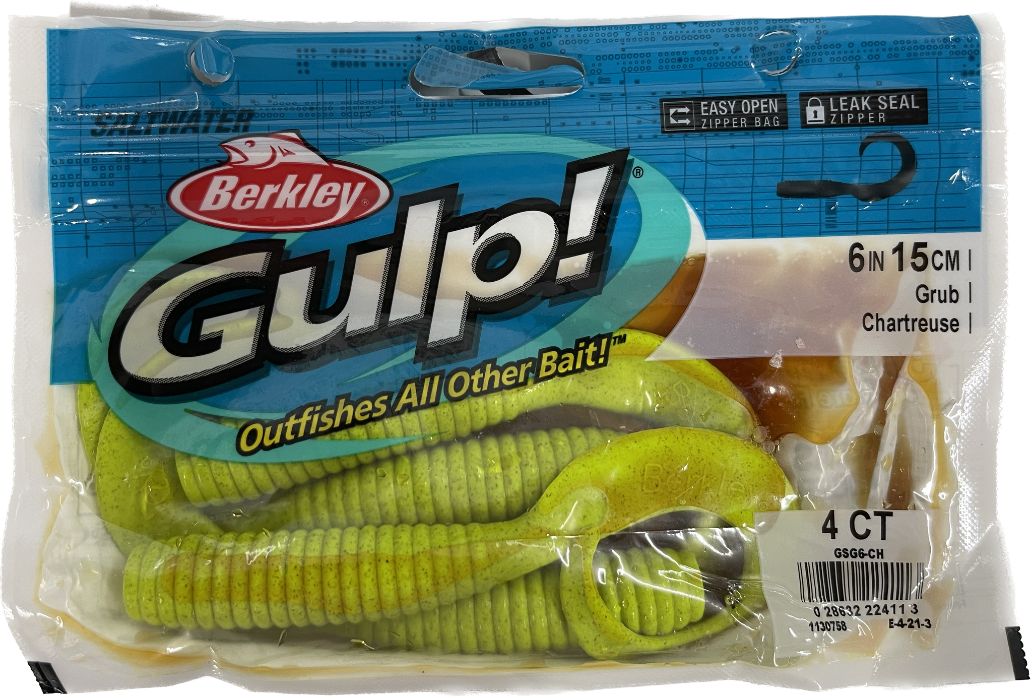 Expand your fishing potential with the advanced scent dispersion of Berkley GULP! Grub. Developed for all saltwater species, this soft bait's proven tail action and large size make it perfect for jigs or as a trailer. Take your fishing to the next level with GULP!'s expanded strike zone.