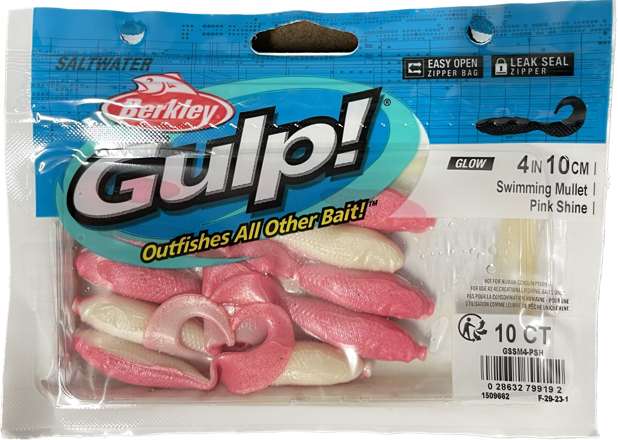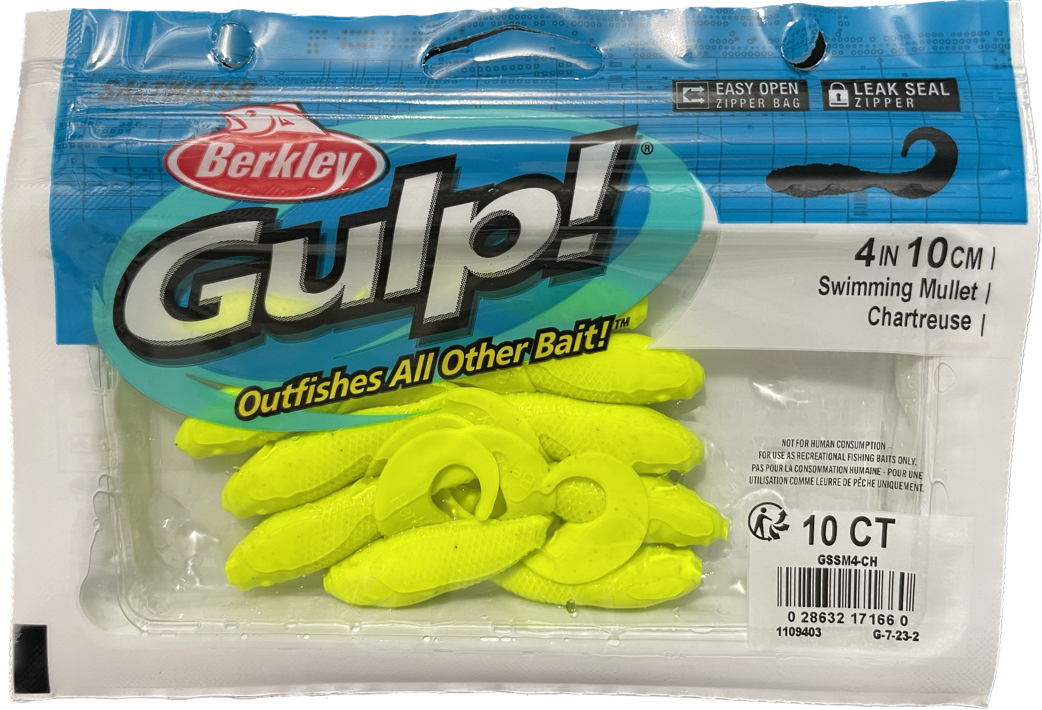 Berkley Gulp! Swimming Mullet is designed with high-quality materials and a realistic head and body, creating a high action swimming tail that will increase your ability to catch fish. Plus, with its extreme scent dispersion, Gulp! expands the strike zone, giving you the advantage to catch even more fish than ever before. Experience the next generation of soft bait with Berkley Gulp!